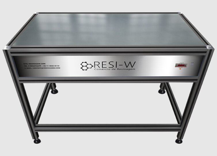 Mesa térmica para cura e secagem de resinas, desenvolvida para secagem de etiquetas e peças de resinagem, nivelando e agilizando o tempo de cura.